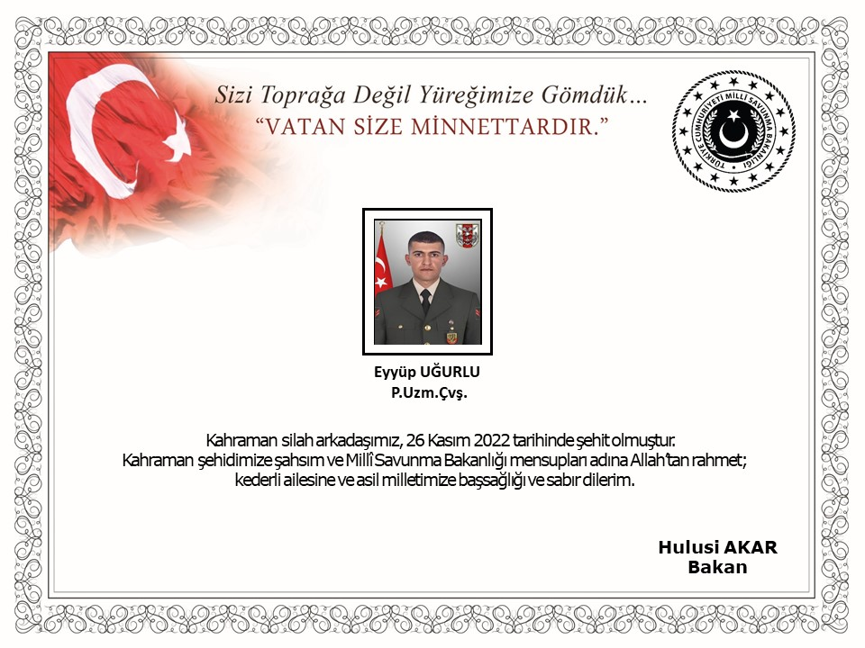 Unfortunately in this attack 3 soldiers made the ultimate sacrifice and prevented even a larger tragedy. Infantry Specialist Sergeant Eyyup UGURLU, Infantry Enlisted Private Mehmet DEMIR, Infantry Enlisted Private Hakan KOROGLU were martyred. May Allah accept their martyrdom!