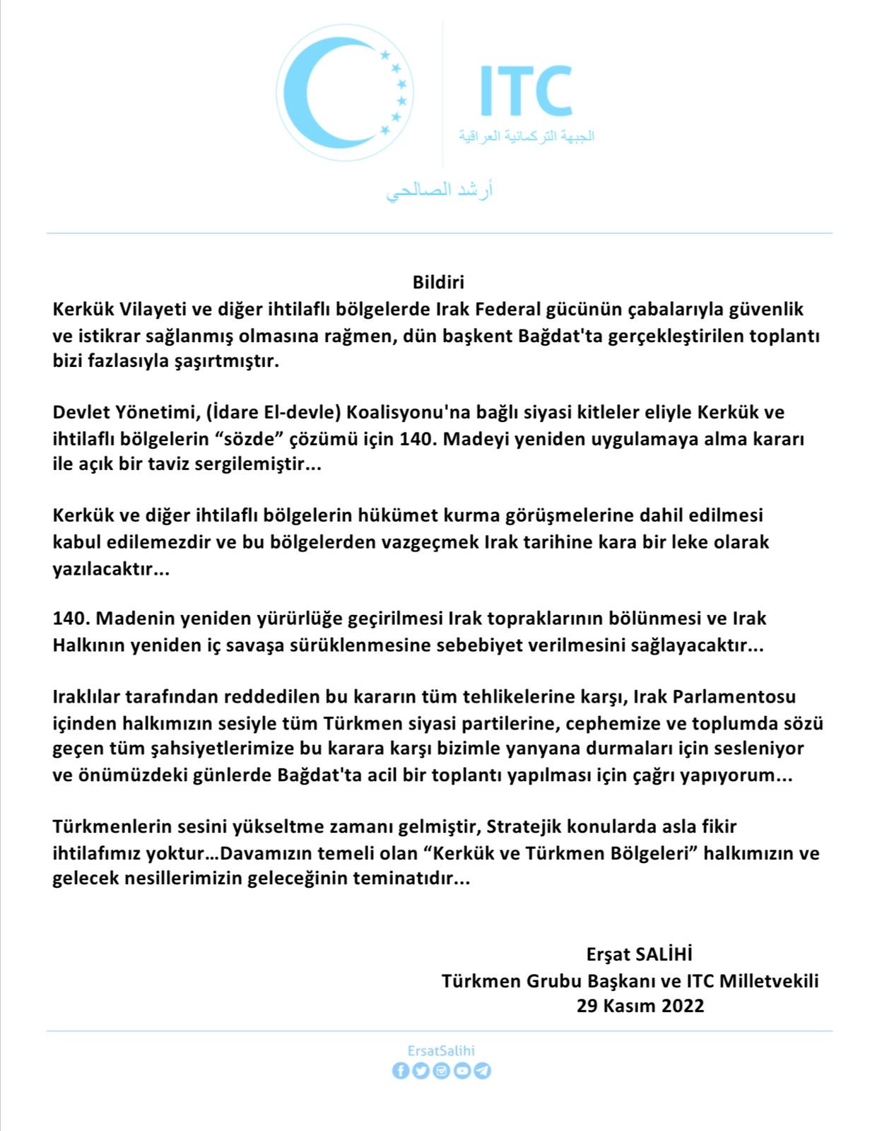 While Turkmen were having trouble with finding a leader for so long they found Ersat Salihi and what have we done? We betrayed him so a Muslim Brotherhood fool can take his place and our enemies can use this fact and strengthen their position even more, infiltrate other Turkmen movements and strengthening them against us. While we gave the Peshmerga tons of weapons and training we gave our Turkmen brothers? Nothing! Maybe the last sentence explains everything?