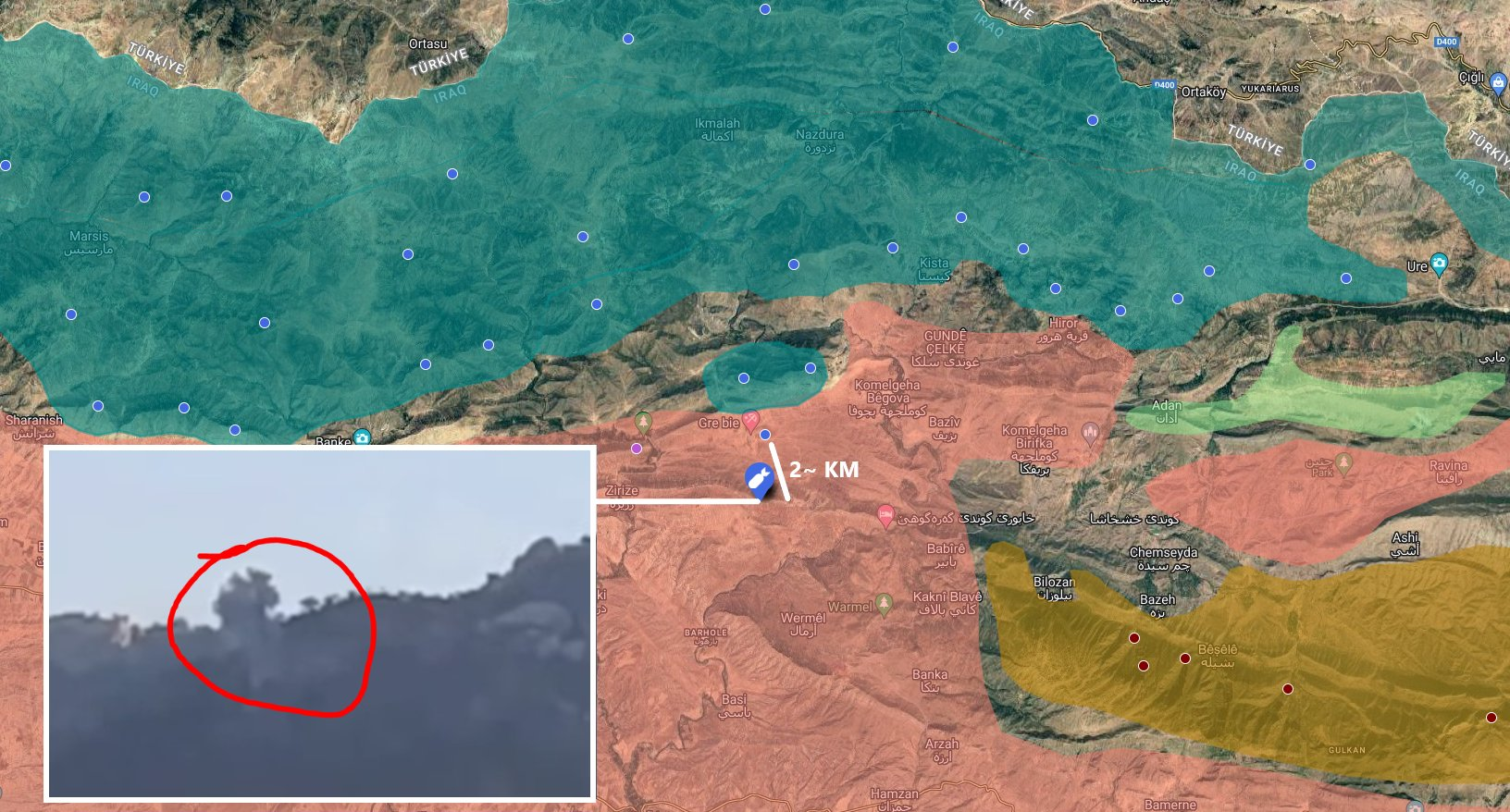 Artillery hit targets belonging to PKK close to the Metina/Gire Biye TSK outpost. Most probably the terrorists came to do an ATGM attack at the outpost.