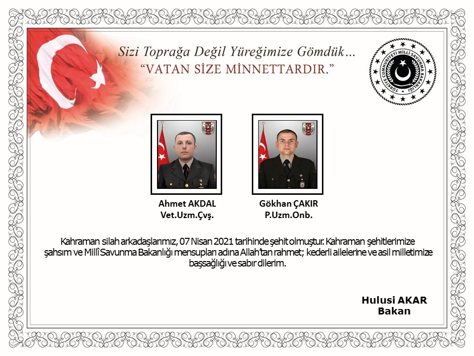 RIP. I also saw it. It was a saddening moment.I saw footage of the ATGM strike that martyred our two soldiers. I will not post the video for obvious reasons. While our soldiers were on patrol there were 2 ATGM strikes. The first one misses but wounds 1 of the martyrs. The unit disperse and finds cover. One of the martyrs go out there to give first aid to the wounded soldier. While giving first aid there is a second ATGM strike with a direct hit. Our 2 soldiers are martyred. I just want to say that this was a heroic martyrdom. We rarely see such heroic deeds on footage. May Allah accepts them in the highest place in Heaven.