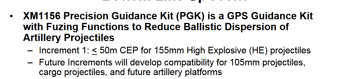 According to manufacturer (NG), the current CEP value of PGK is less than 30 meters. (Probably around 20-25 meters)