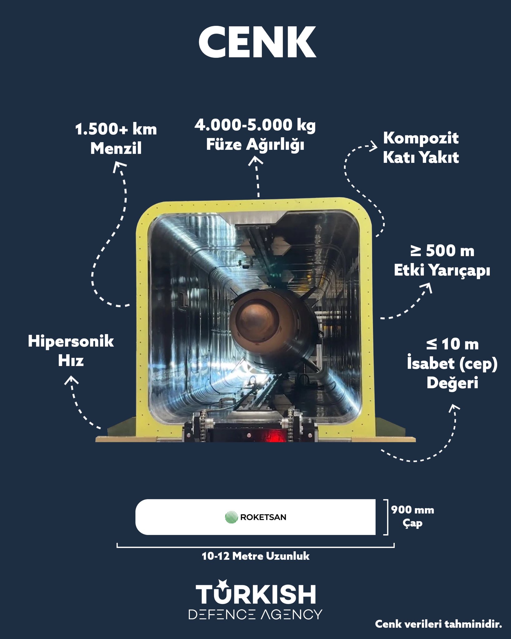 And I'm writing, who cares about 500 meters of impact radius if you hit the target bullseye. Having a bigger impact radius is not good for tactical weapons because it causes collateral damage. Do we want a terror weapon or a viable, accurate tactical weapon? Besides, Cenk will have many options like cluster warhead and frag warhead. If you trigger it above the targeted area impact radius can reach 500 meters, which is not far-fetched.