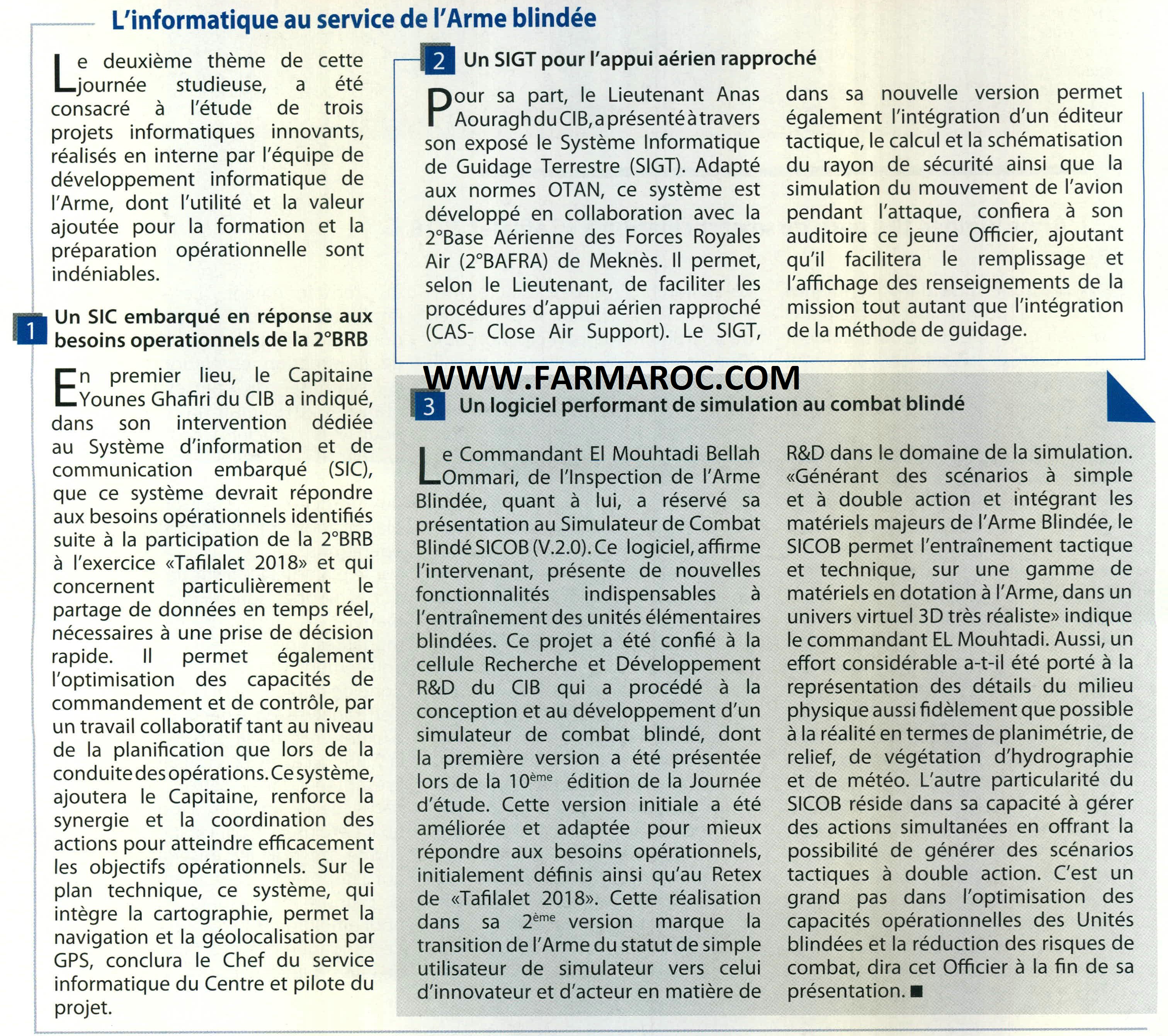 in an intervention by Captain Younes Ghafiri From the armored training center dedicated to the integrated information and communications system (SIC), where he said that this system was successfully tested during the “Tafilalet 2018” maneuvers with specific operational requirements, especially with regard to sharing real-time data needed for quick field decisions