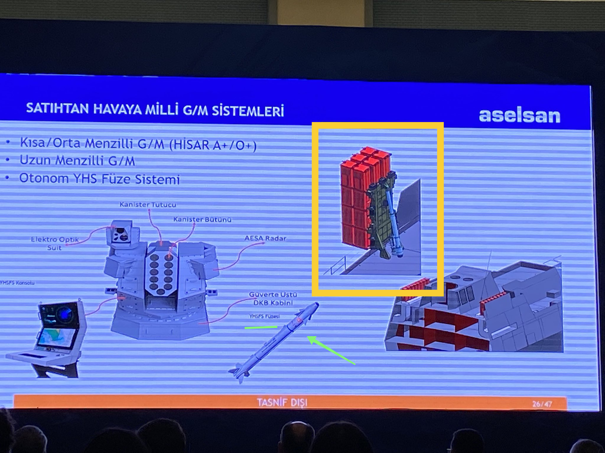 "It seems that Roketsan will use the capsule technology that will be used for ATMACA B2 GM, also in HİSAR Derin GM. The nose part of the sectioned submarine model on the ASELSAN stand at the 10th Naval Systems Seminar ... Torpedo tubes and AKYA, ATMACA B2, ORKA and Unmanned Underwater+"