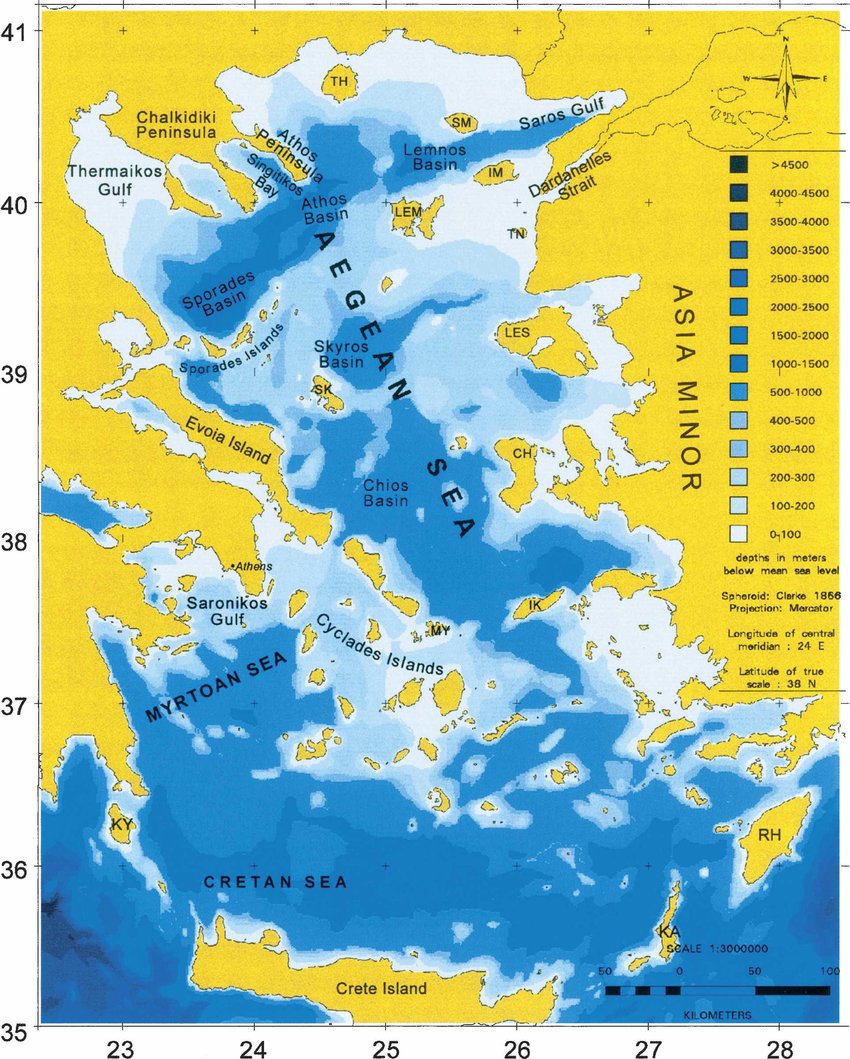 @Anmdt could probably comment on this better. But Aegean is a Sea full of islands and although the deepest place is 3500m (near Crete), the average depth is around 1500m. In fact a lot of the Aegean is not very deep. If you look at the depth chart of the Sea below, you will see that it is not reallyy a Sea where you would need frigates bigger than 4000tons. You want capable well weaponised littoral water vessels in Aegean. Milgem Corvettes and I-Class frigates will operate more efficiently. Also it is a Sea that is ideal to operate Reis class subs.