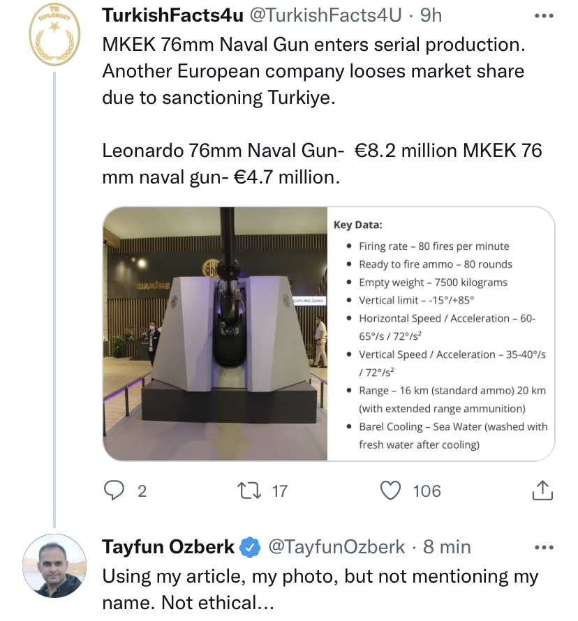 Well he is a joke period. According to him Turkey right now was producing the SU-57 and SU-35 with Turkish avionics and armaments, had bought the J-20 from China, JF-17 with Turkish avionics and armaments from Pakistan. And this is just the tip of the shitberg is spreads on Twitter.
