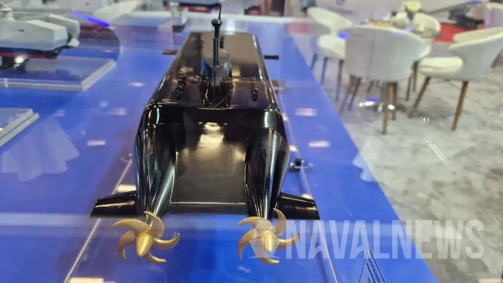 According to information provided by officials at the Dearsan booth, the submarine has two pressure hulls, just like the Typhoon-class submarines. Although the submarine is in the design phase, development is still underway, and CONOPS have not yet been defined, it could be used on large amphibious ships with a pool, such as the TCG