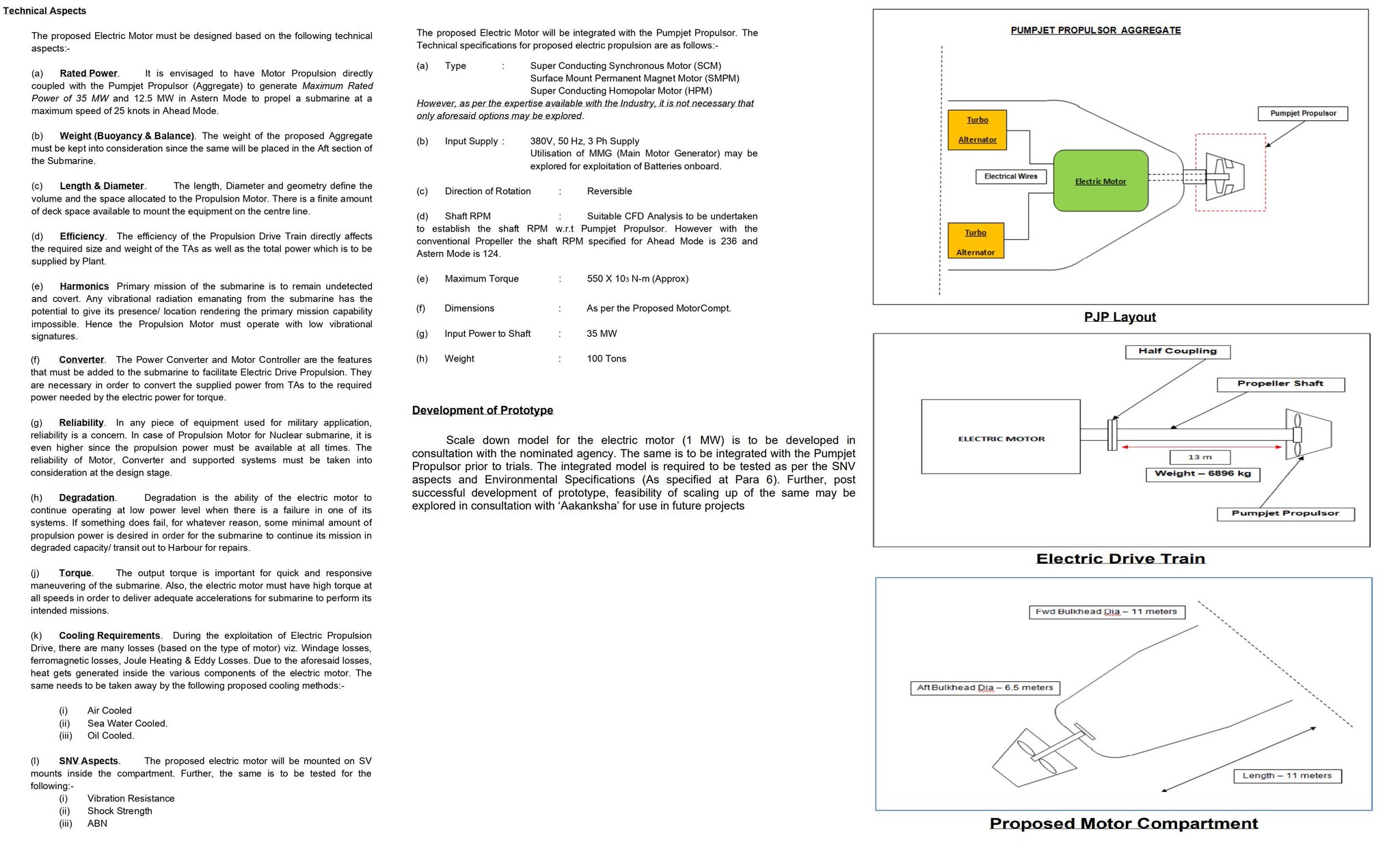 Above is a publicly-available Expression of Interest (EoI) document (sourced via the Twitter handle of strategicfront.org) calling for industry to develop a 35MW Electric Drive solution for future submarines of the Indian Navy.
