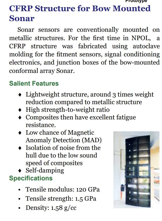 Based on reports from official DRDO publications (pictured below) it's evident that R&D work on both conformal bow-array sonars as well as planar-arrays (ostensibly used for flank-array setups) is/has been ongoing in India for several years. It's difficult to say which R&D program might or might not find a real-world application on upcoming submarine programs. I think it can be safely said that there's at least a determination in the Indian Navy to advance past the older cylindrical-array sonar setup used in the bow of the current generation of Indian nuclear boats. Among SSNs that are currently being built, the British Astute-class comes to mind as one that has a conformal bow array.