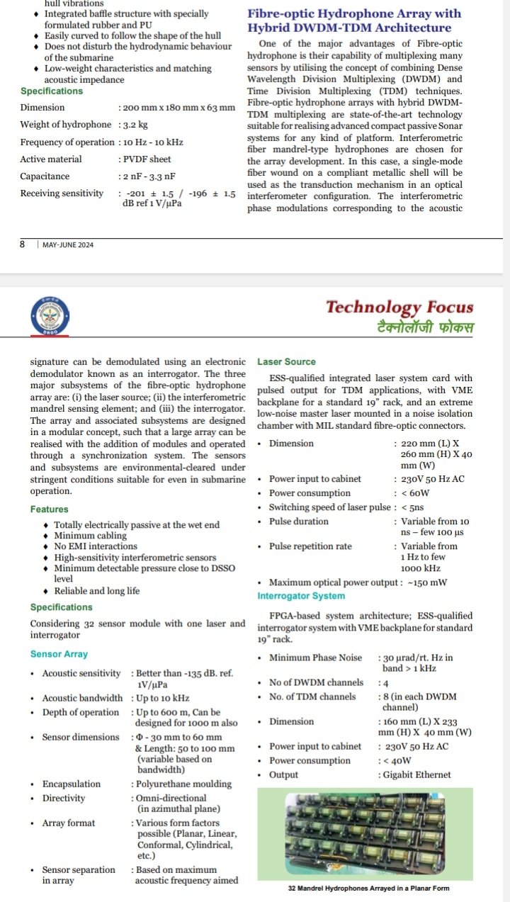 Screen-grabs from the DRDO's official 'Technology Focus' publication, detailing some R&D work on next-generation sonar solutions.