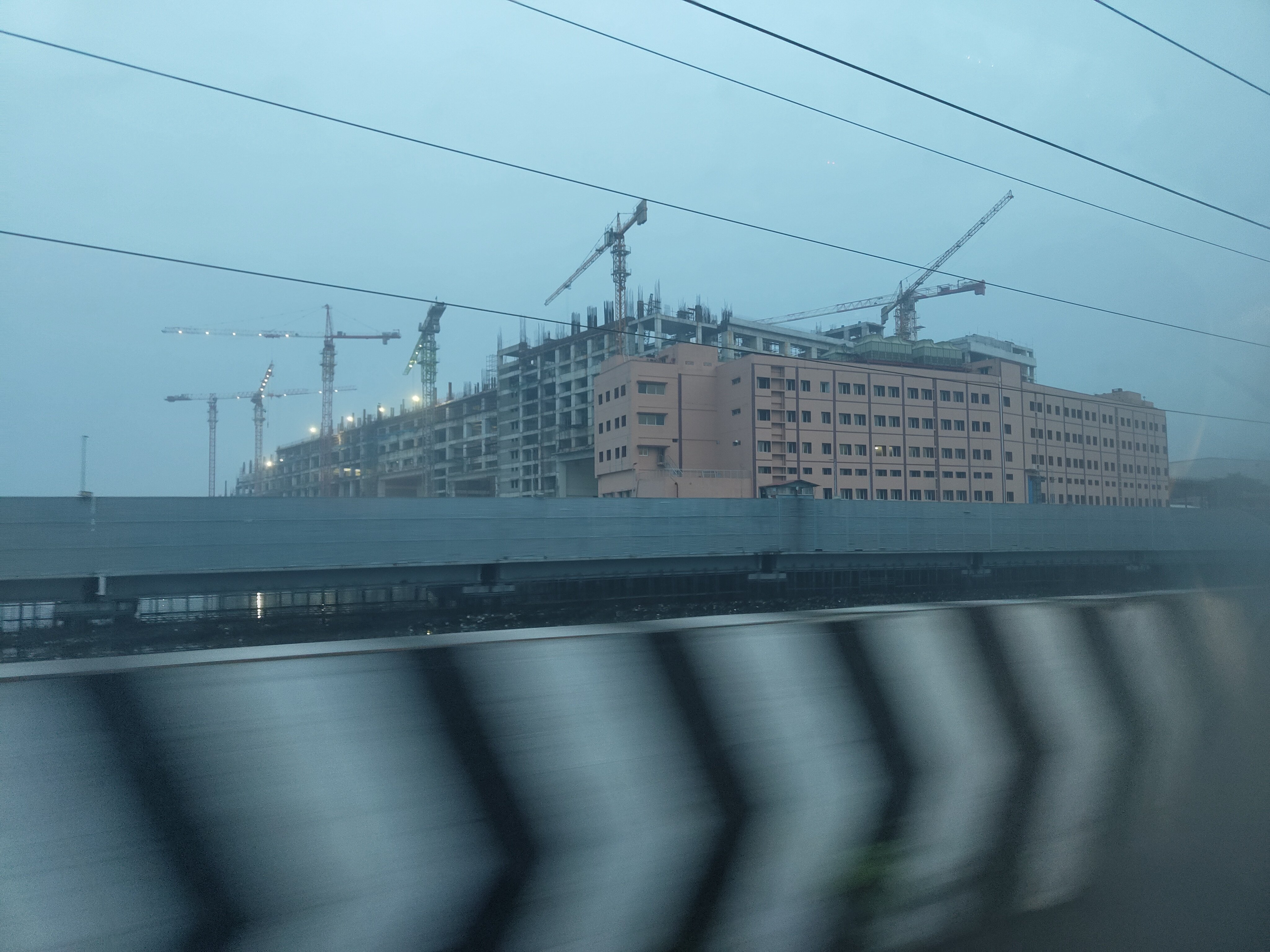 The 'administration' building coming up behind the new dry dock, as seen from the motorway by civilians