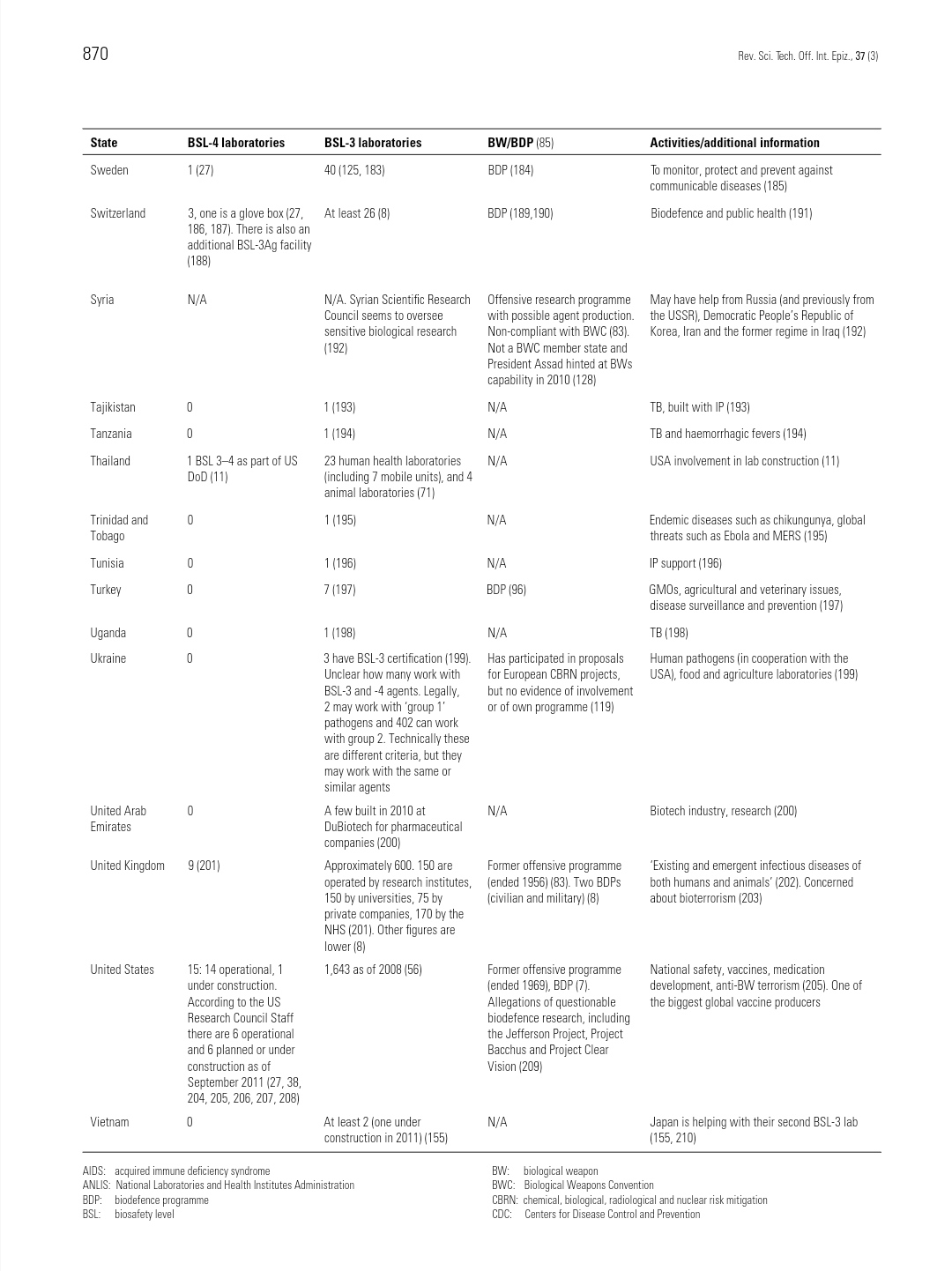 • The Ministry of Agriculture and Rural Affairs has four BSL facilities that are focused on animal diseases and vaccines.