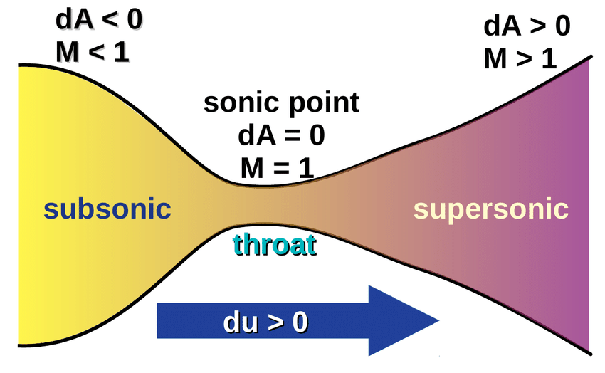 In order to achieve continuous sustained supersonic flight the engines’ nozzle design is most important. We have all heard Dr Aksit mentioning CD nozzles (Convergent/Divergent) . To understand this better one needs to look at the coarse representation of a “Laval-Nozzle”