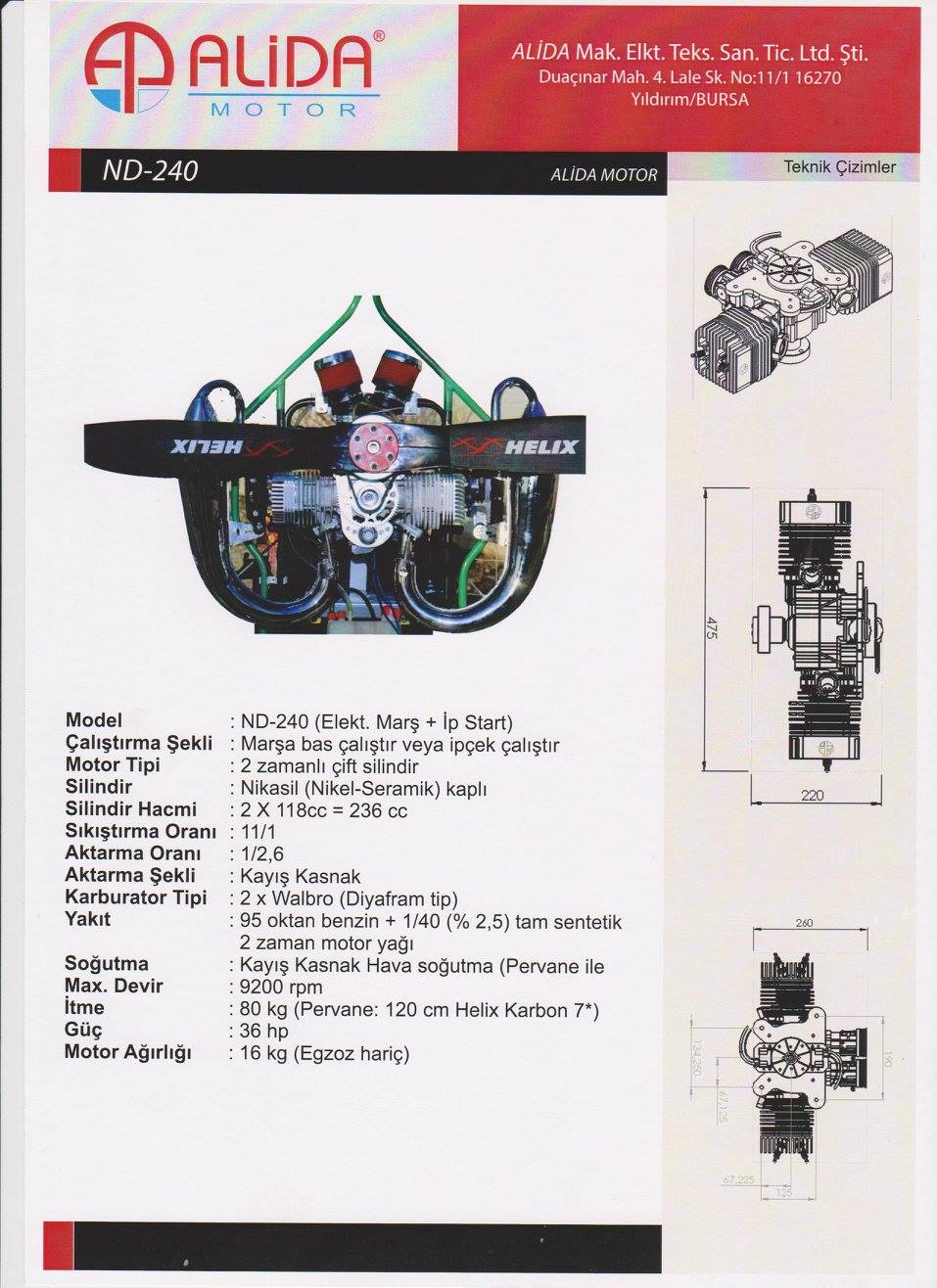 The first two stroke paramotor engine of Turkey is made by Alida Motors.