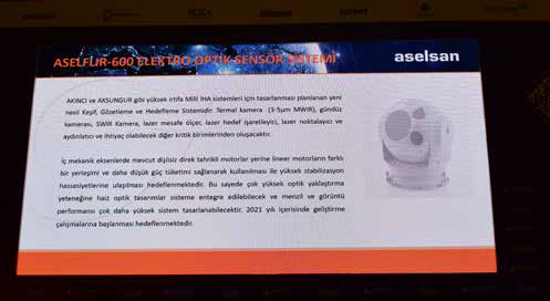 Aselsan has also introduced a new product called the Aselflir-600 made for HALE UAV's such as Aksungur and Akinci. Thanks to its bigger size of 22 inches and the improvements of the 'next generation gimbal development project', it will be able to have better performance.