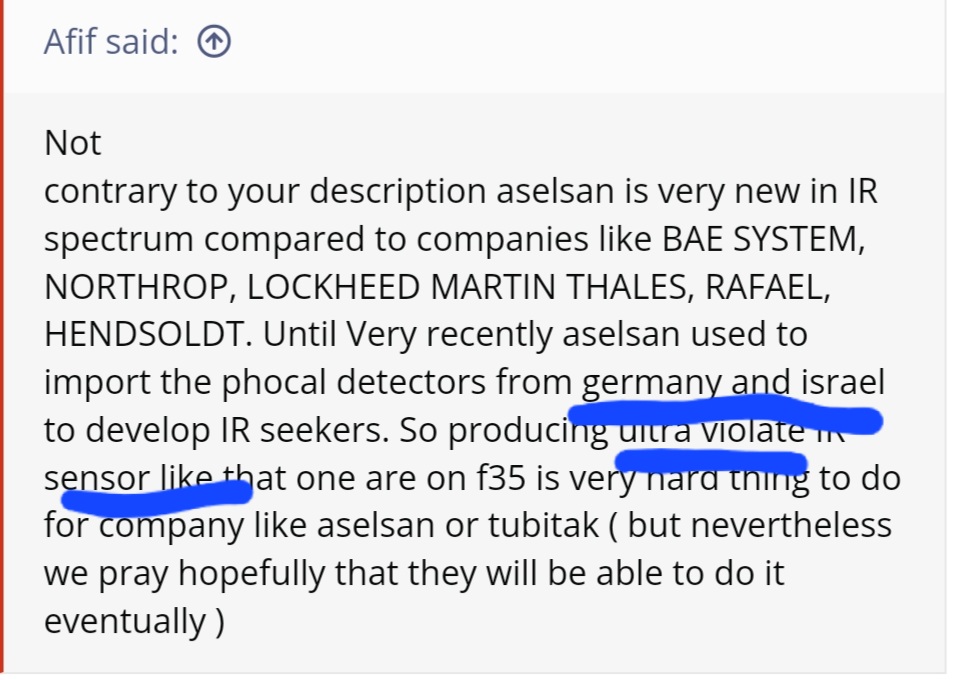 And it also says, 'aselsan also continue its efforts to localize the infrared detectors'