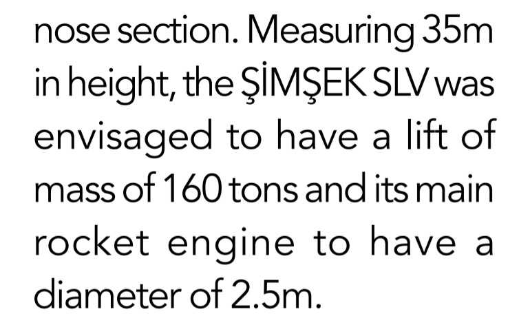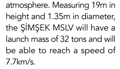 Şimşek-SLV 1500+kg to 700+km altitude, 2,5m rocket engine diameter