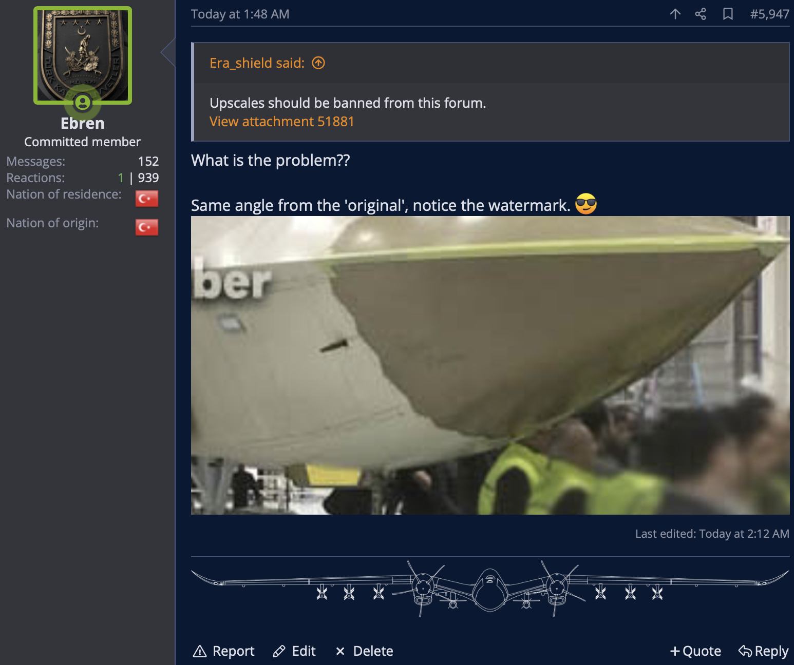 Its also worth keeping in mind whoever you are in this world that Turkey succeeding in this project will also benefit you. Why? Because with a Turkish option out on the market it makes the alternatives cheaper and easier to obtain and if they won't sell you it well the Turkish option is also there. Turkish drones pretty much democratised drone warfare for the rest of the world, china also played a smaller role in this to a degree to.