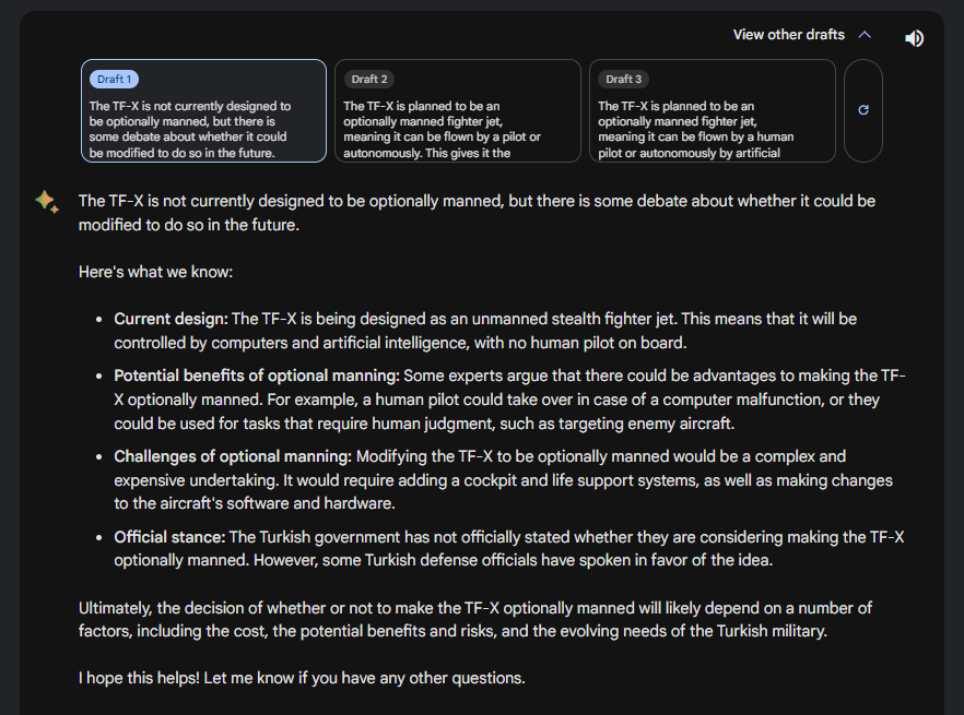 Also, even if it isn't optionally unmanned, I reckon it would be easy to make it so. I remember Temel Kotil saying that KAAN will be able to RTB on its own when the pilot lost consciousness.