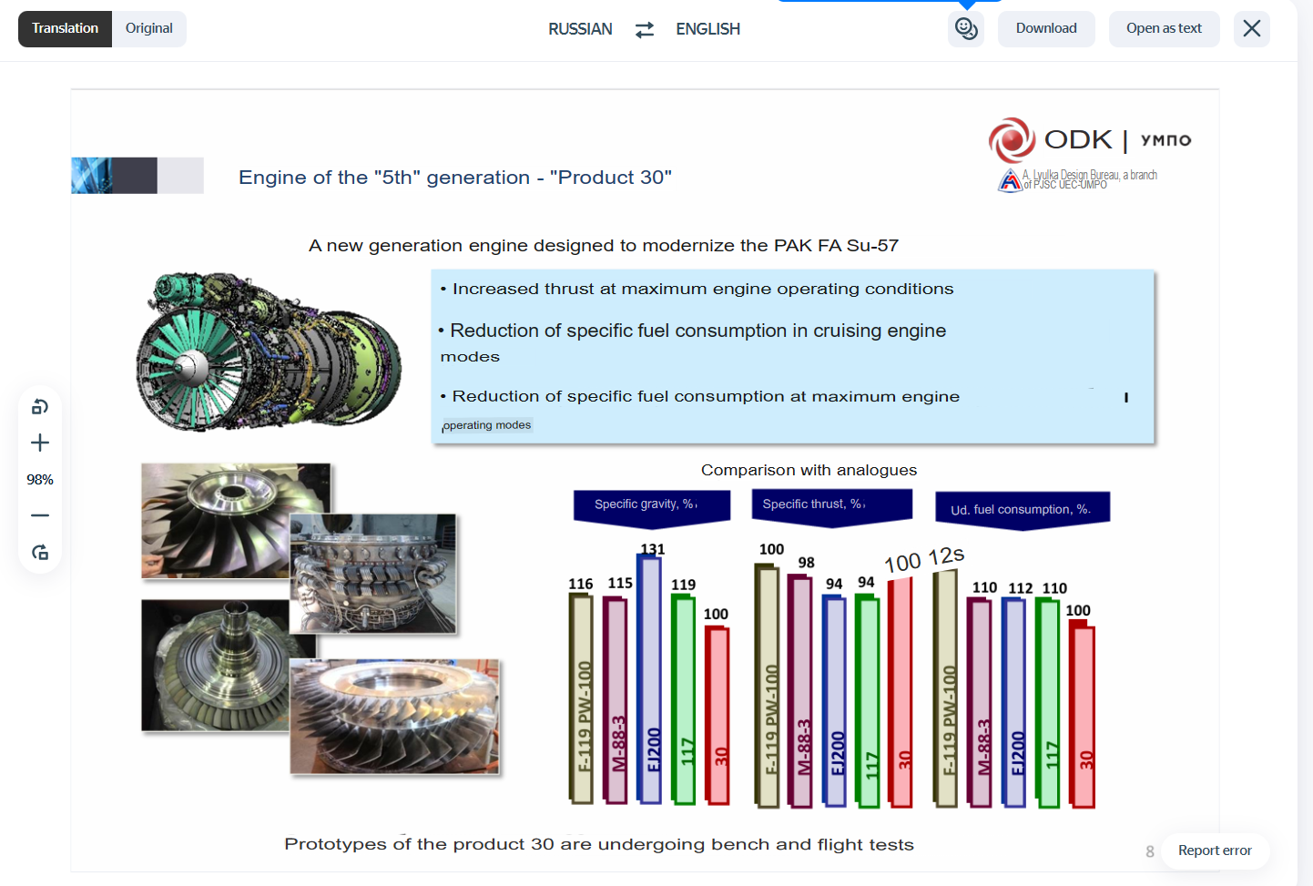 It is also a known fact that the Russian jet engines’ combustion chambers are designed as shorter than western ones. Although this may give certain advantages, it also increases the chance of throwing out unspent fuel hence a smoke when pushed hard. (This however is less prominent in later engines). When you have a school of thought and design set on a specific way to produce your engine, it is not always feasible and workable to add new tech that works in the West. Hence may be their struggle with single crystals?