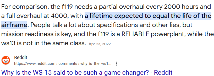 i.e Essentially what you describe with the Russian AL series not having the commercial equivalents in play (both raw production capacity wise and time/MRO feedback wise) that say the US has with GE and PW.