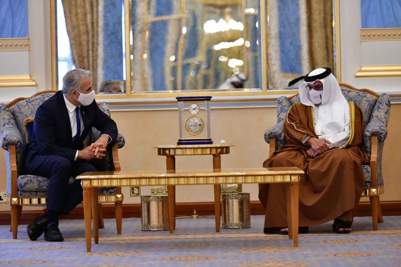 “Our opportunities are shared. Our threats are also shared, and they aren’t far from here,” Lapid said in remarks to reporters, apparently alluding to Gulf power Iran.