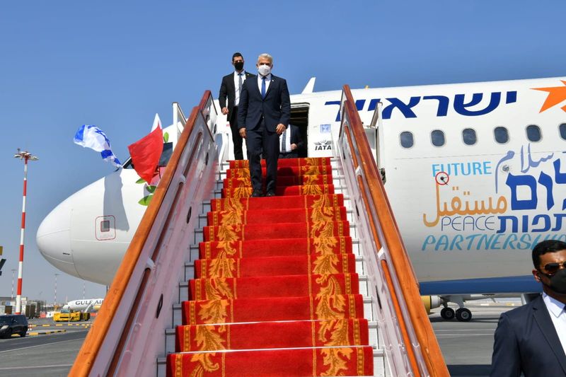 Israeli Foreign Minister Lapid arrives at Bahrain International Airport in Muharraq