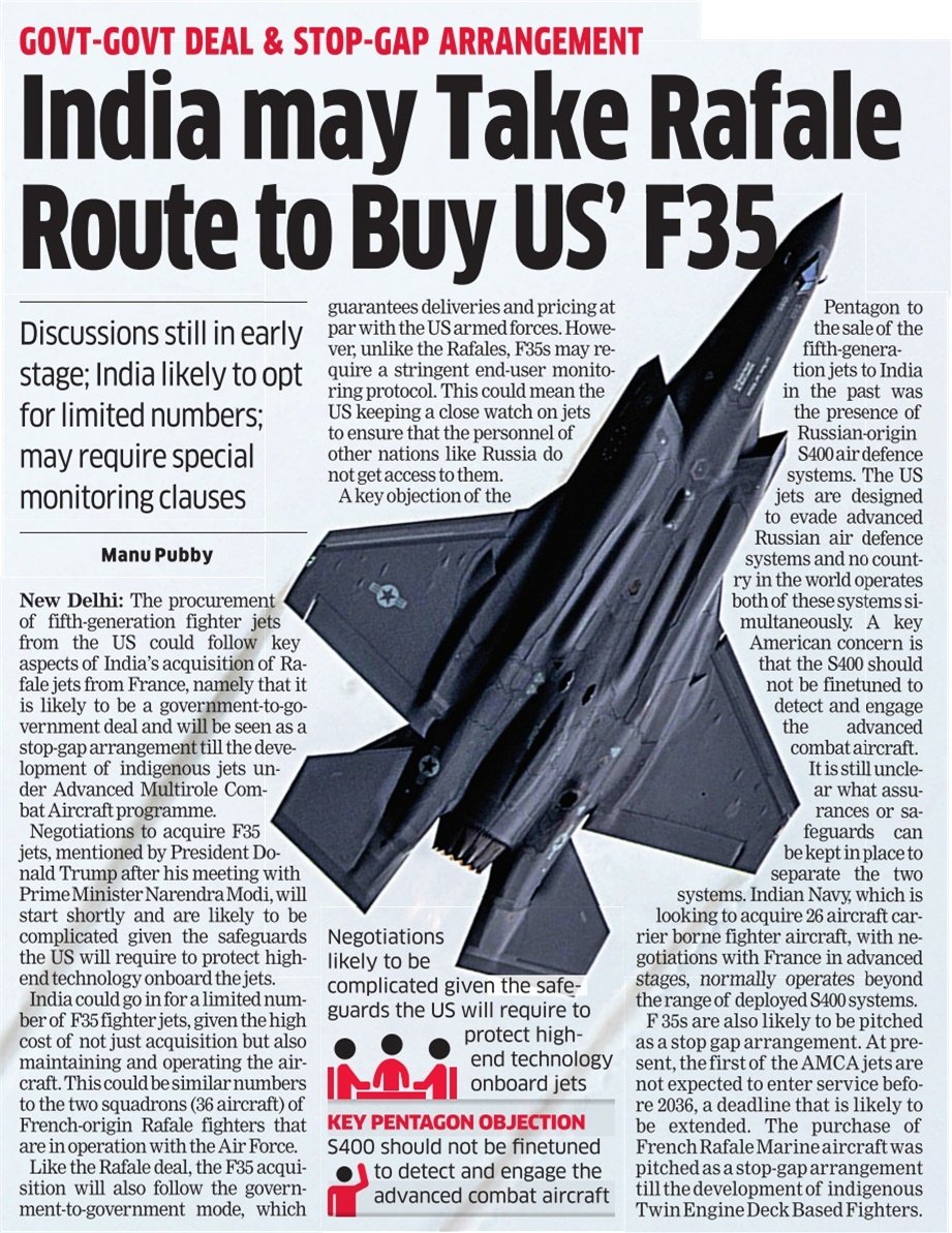I'm guessing it's more like a smoke screen from GoI to stall it until the next 4 years since if US is actually serious about pushing the F-35, there's no way our ancient and broken process allows us to finalize a deal within 5 years at the very least. Additionally, they might want us to sack every defense deal with the Russians including scrapping the S-400 and procure a US alternative