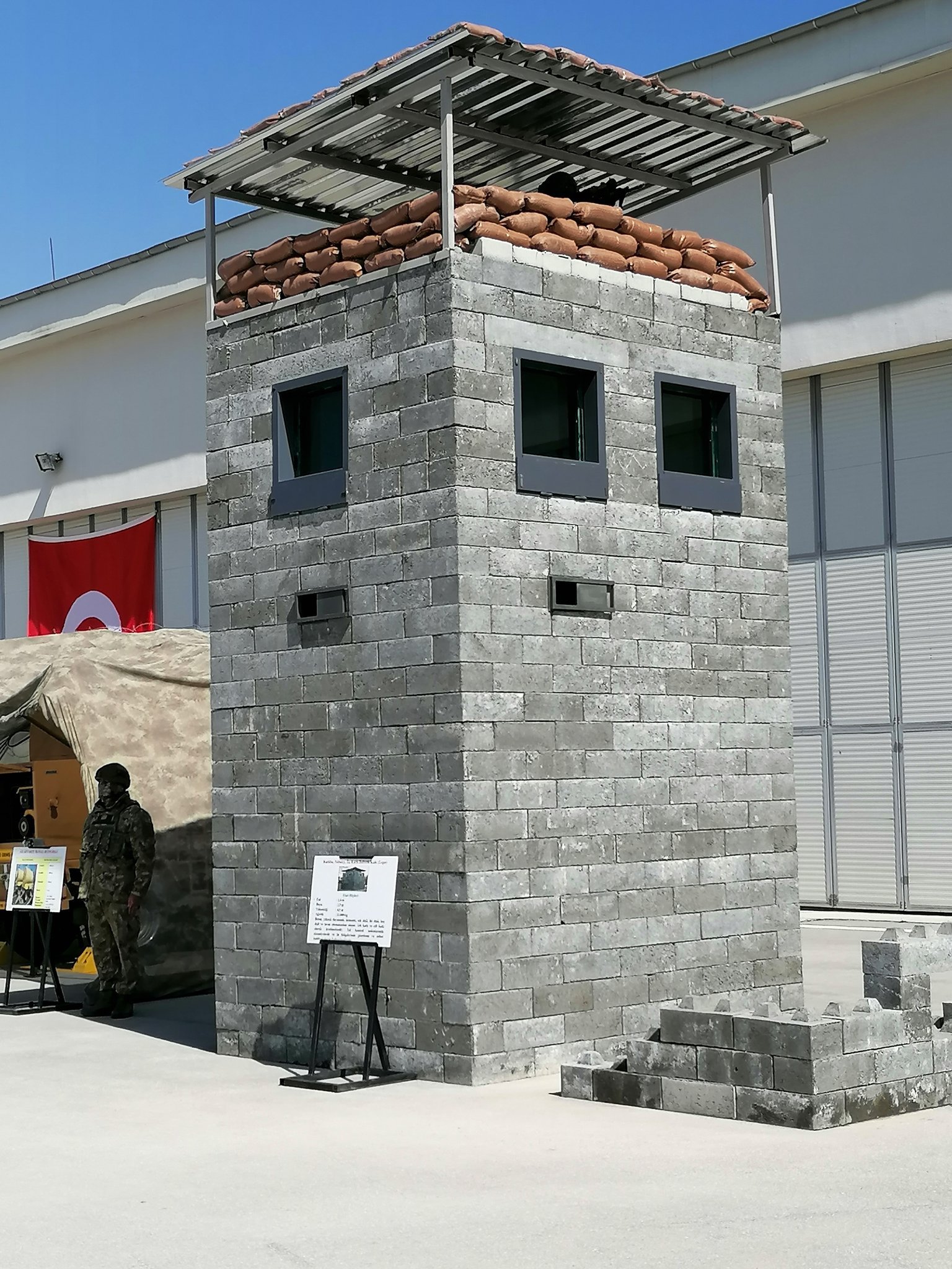 I think the mistake is in the user in this case the Gendarmerie. The lego blocks can really help in the fast construction of some structures but in that case that little... ehm... thing is even dangerous for the soldiers in case of fire. A firing position should optimally be reinforced with sandbags or similar. Those hard points of the lego blocks can really turn into a shrapnel after explosion or enemy fire and can seriously injure or kill the personnel there.