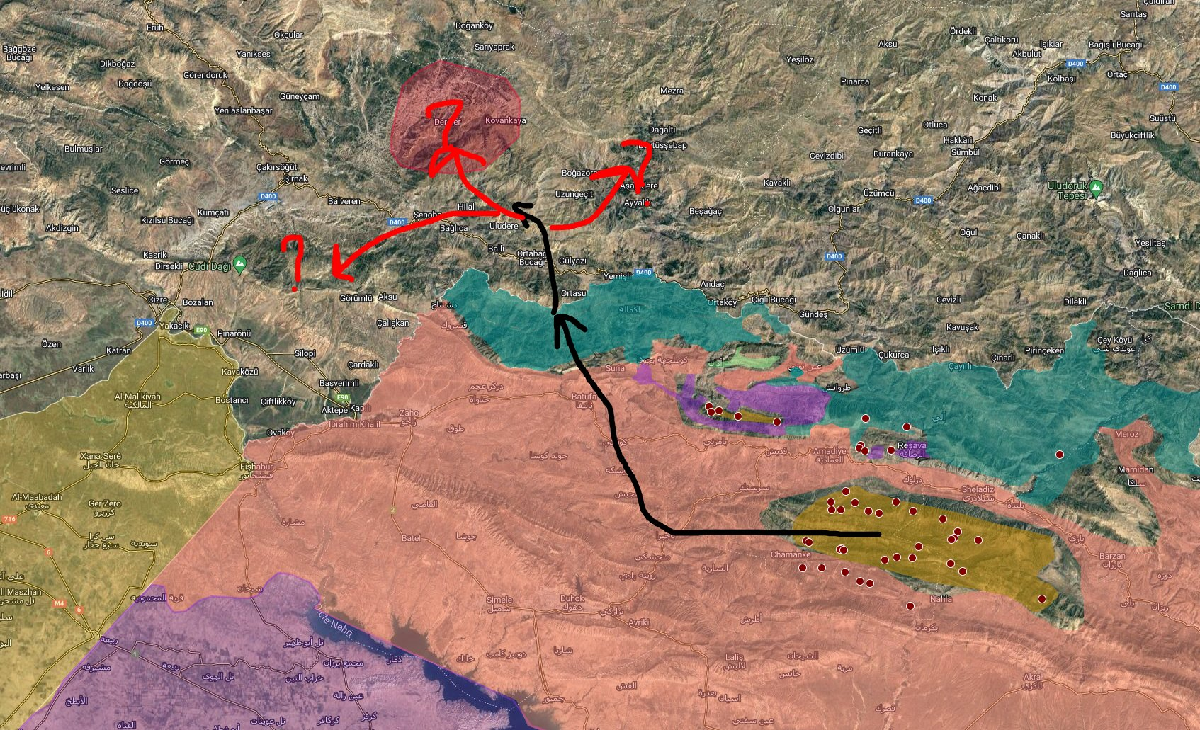 Let's draw an estimated route. Their exit point is Gara. They did not choose to fly over the operation area. They passed over the Claw-3 and Claw-Kaplan operation areas. They may have planned to infiltrate Cudi, Bestler Dereler or Beytussebap from the Dugun Mountain area.