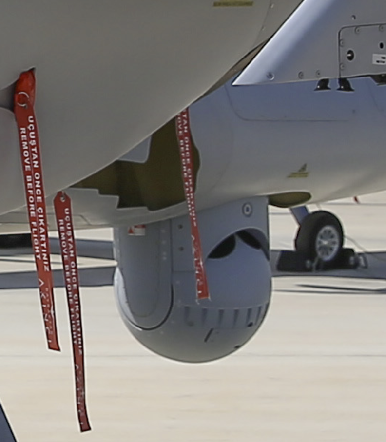 I am %99 sure this is a Wescam product (I searched every possible EO provider). Maybe it can be a MX-20 but it is mounted deeper than Akıncı ?Not Mx-25D. Screws are not in the same place. One higher than the other