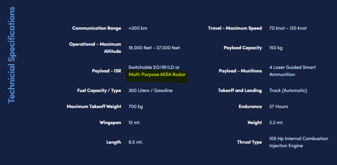 And yet they can't even match the performance of TB2. Anyway, on the subject of TB2 - I see they have updated payload of TB2 - MULTI-PURPOSE AESA RADAR?!?!?!?!