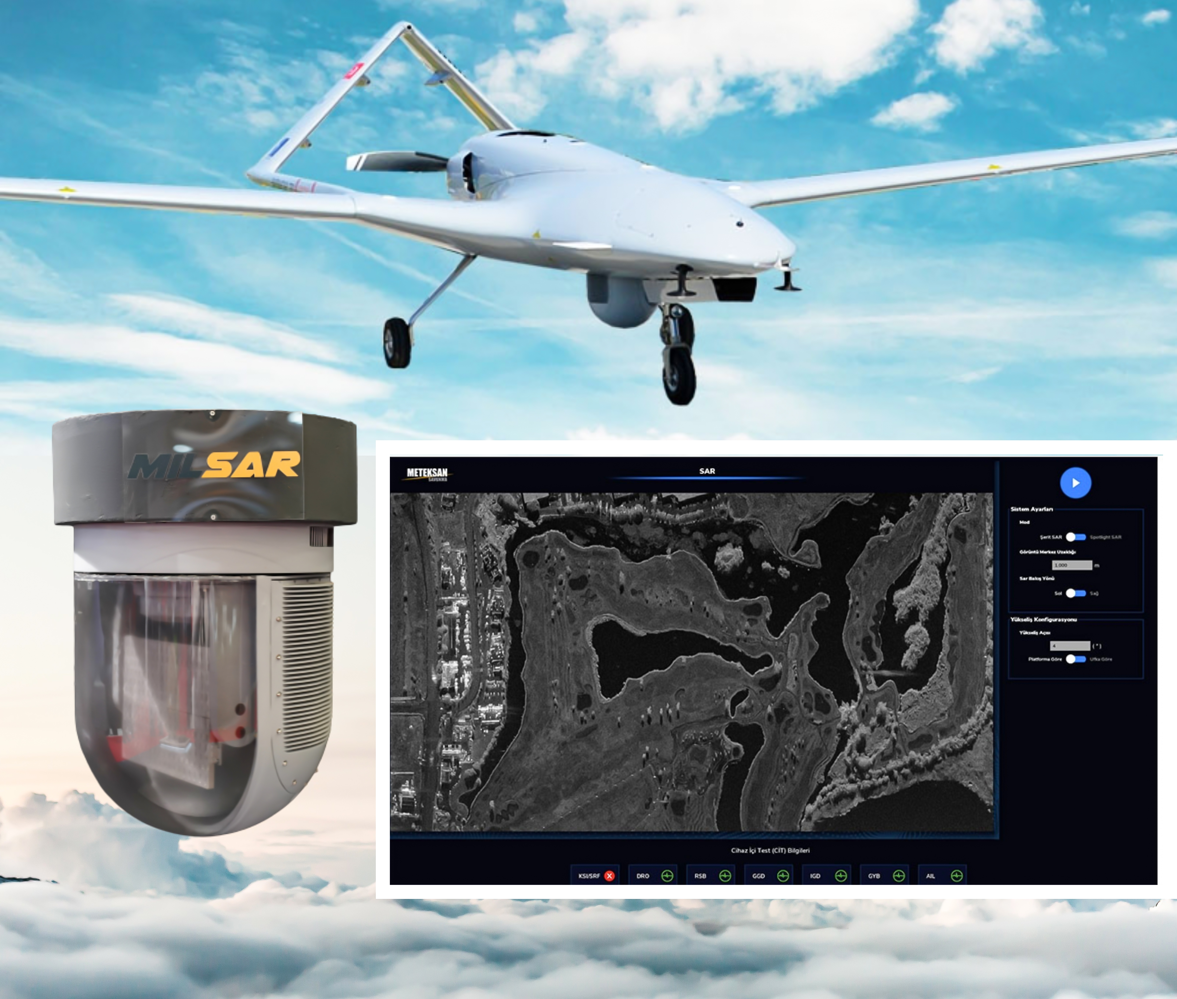 Due to it’s planned 83km range in “over sea scanning mode”, it was thought to be very useful on Aksungur and even Akinci. Also because of it’s quick interchangeability it is ideal to change over to MILSAR from another system and then back again.
