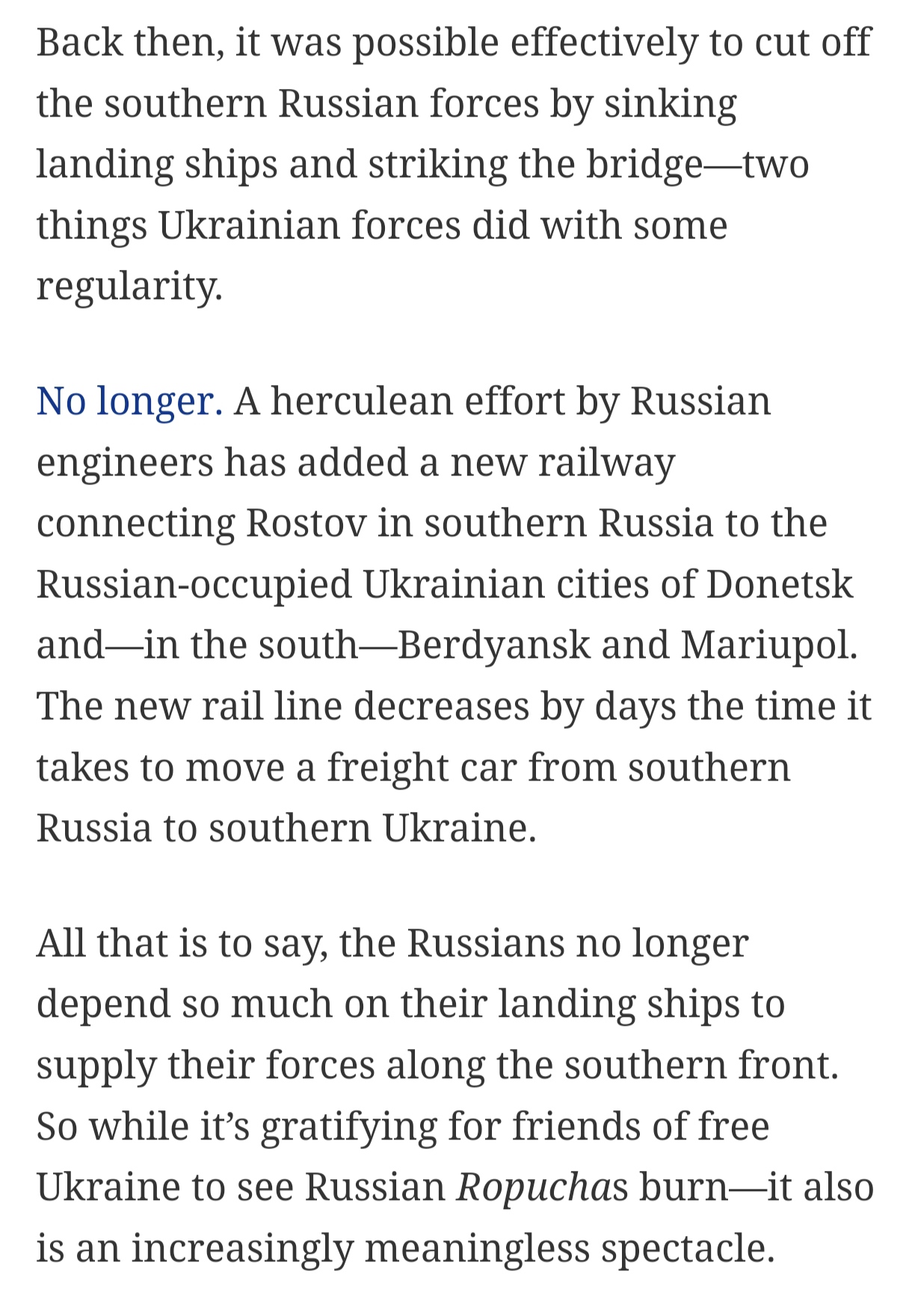 The most important point is that we don't have to fight Ukraine's war for them. They're willing to pay a heavy toll for freedom from Russian oppression, all we have to do is spend miniscule percentages of our annual budgets to ensure that they have what they need to survive as a nation. They're highly motivated, have proven plenty capable of war fighting despite Russia possessing significant military advantages and they're aligning their defense industry with those of the West.