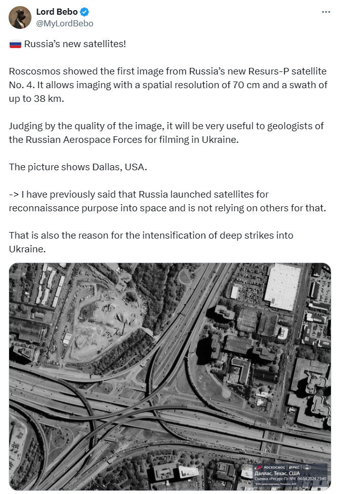 They are going to launch a 5th one that will be alot better in 2025. Since this satellite went into service in late march this probably explains the F-16 doom posting articles all over the web now since this resolution would be enough to identify an airfield in Ukraine.