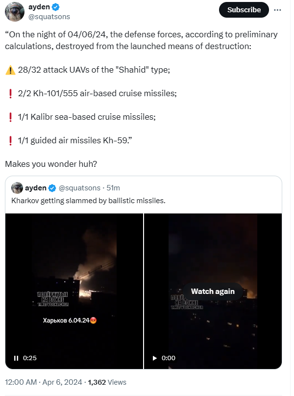 I can't decide if they are going into strike mode these last 2 weeks because, 1.is it better satellite to coordinate strikes, 2. a planned offensive since the weather will dry up. The west didn't even give the F-16s a chance to prove themselves and are downplaying them these last few days from their articles. I am assuming the last hype weapons they are going for is long range cruise missiles or long range land to land missiles.