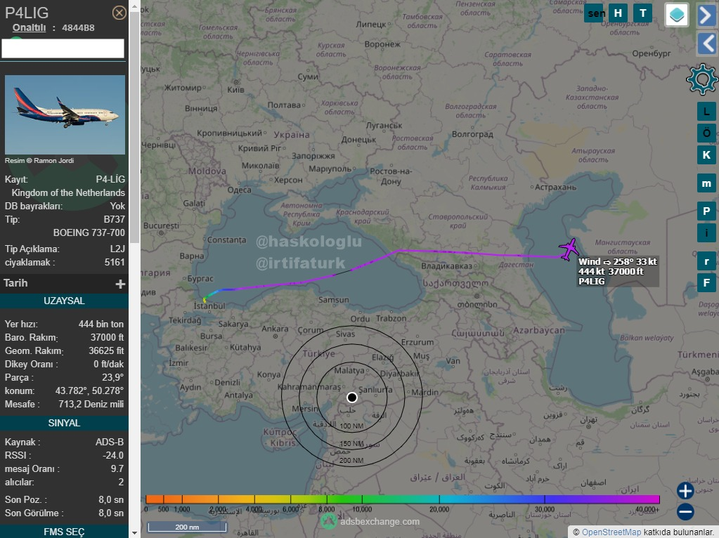 Rostec CEO and Former KGB Agent Sergey Chemezov's plane took off from Istanbul.