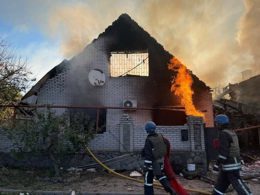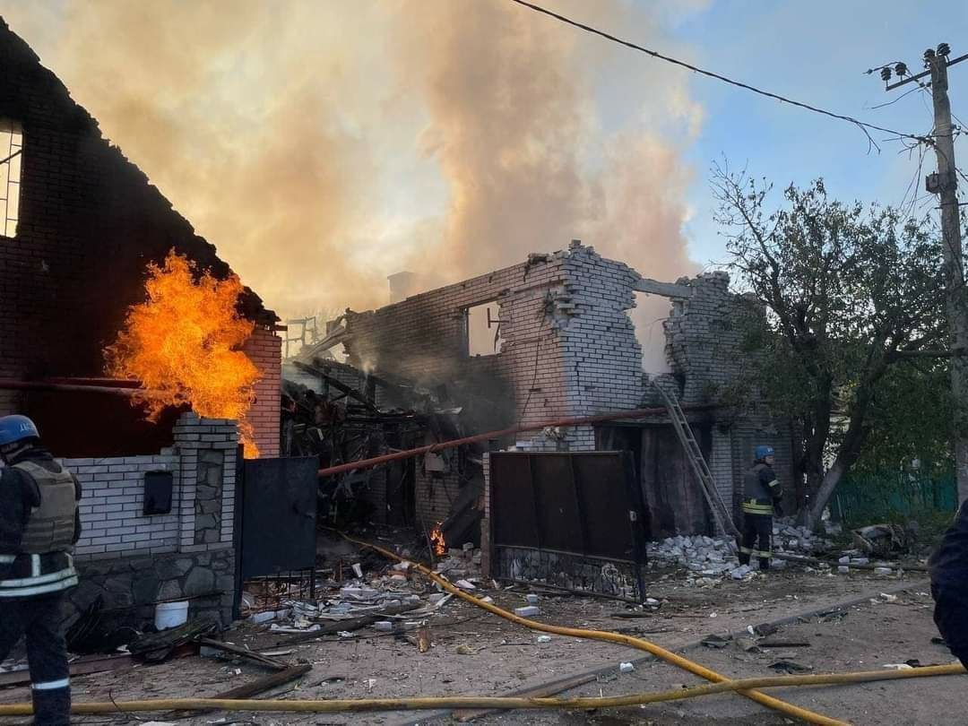 One of the missiles hit the shopping center "Aurora". The shock wave touched nearby houses.