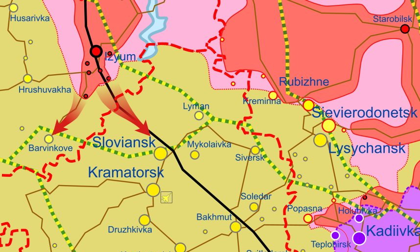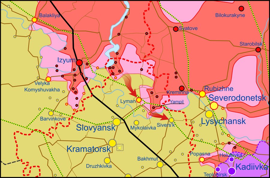 23 days passed since my post. Russians advanced 13 km further from Popasna towards Yampul.