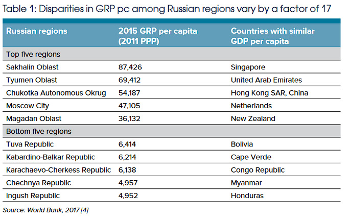 Comparing differences between regions/federal districs we have (varies significantly from year to year and source):