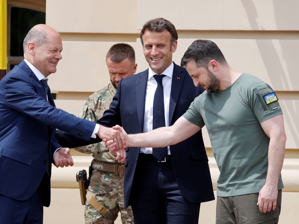 Actually, this photo says it all. Zelenskiy, in light military garb, salutes the German chancellor with a nod like a German soldier.