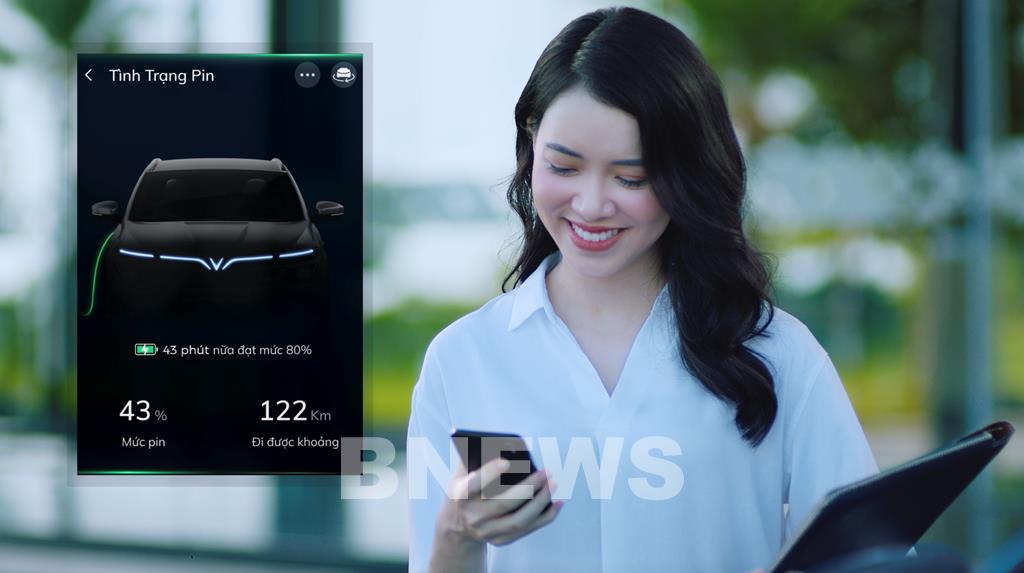 Users monitor the charging status of VinFast VF e34. Photo: BNEWS/VNA broadcast