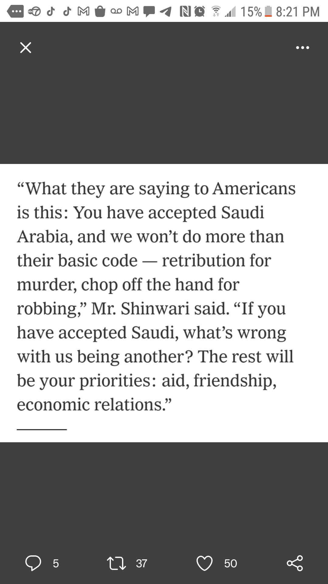And that is exactly same today in the great US-Saudia alliance. Just to be clear most of the sheikhdoms in the gulf that actually US bases are not exactly known for their Swiss like liberalism.