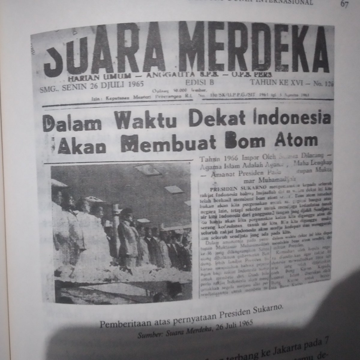 Imho, Soekarno sebelumnya termasuk menentang penggunaan dan pengembangan program nuklir/bom atom, tapi perang dingin waktu itu mencapai puncaknya termasuk terjadinya krisis Kuba dan ketegangan di Eropa membuat Soekarno mengubah prinsipnya soal senjata nuklir.