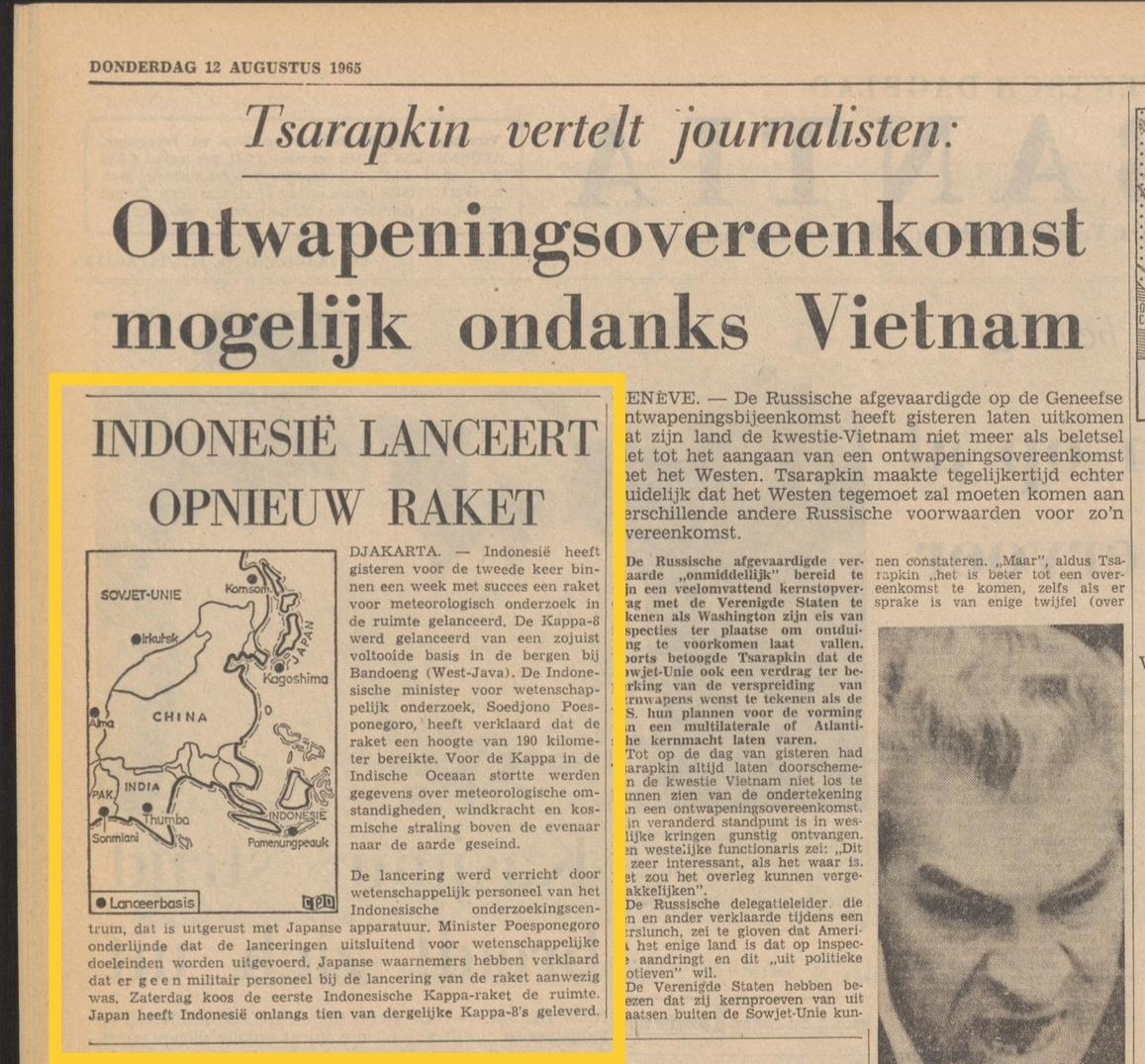 Dan di Bulan September, terjadi peristiwa G30S, dimana pemerintah Soekarno jatuh dan proyek bom atom termasuk Balistik misil Indonesia dibatalkan setelahnya.