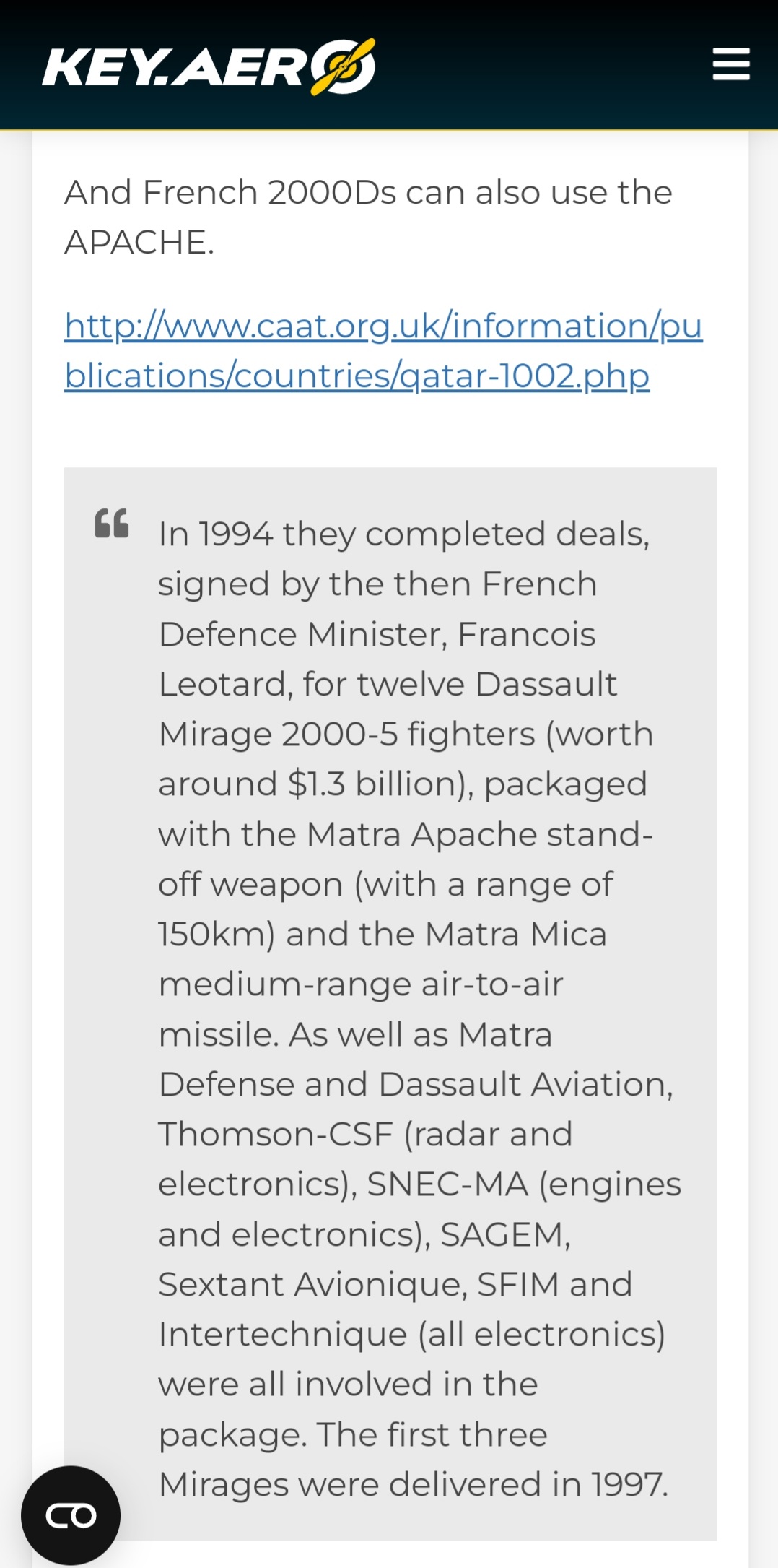The ones being sold to Qatar was rumoured to be Apache, sadly the website cited (CAAT) cant be access anymore, the only thing left is a discussion from airspace forum.