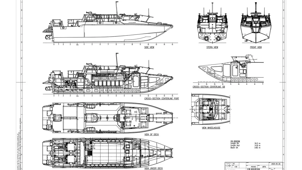 They can make exits on each hull either towards inner or outer side. Inner side sounds more secure to me, and they can lower portion of the front deck as a ramp to further allow the teams disembark.
