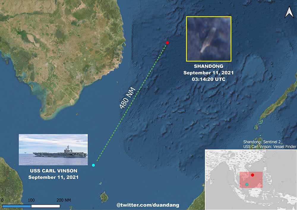 China’s Shandong aircraft carrier also left Sanya and sailed southward. It was spotted in the northwest of Spratly Islands on September 11.