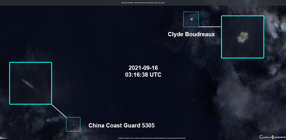 The satellite image showed that CCG 5202 was about three nautical miles from Clyde Boudreaux on July 3, 2021.