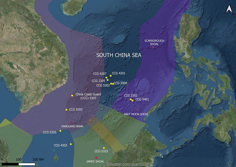 But Haiyang Dizhi 10 is still in the Natuna Sea today along with CCG 4303. And CCG 5305 still sails near Clyde Boudreaux drilling rig.